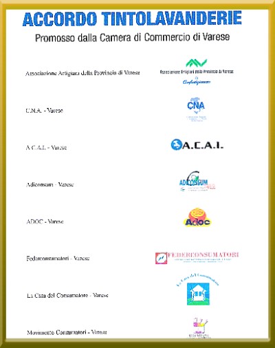 QUESTA ATTIVITA' ADERISCE ALL'ACCORDO DELLE TINTOLAVANDERIE PROMOSSO DALLA CAMERA DI COMMERCIO INDUSTRIA ARTIGIANATO AGRICOLTURA DI VARESE