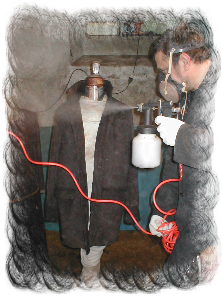 La vecchia cera viene completamente levata e dopo aver stirato il capo, manualmente viene repristinata la nuova cera INODORE per ridare l'idrorepellenza al capo.
